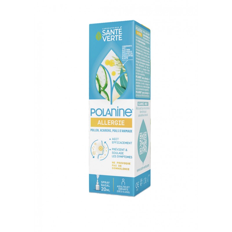 POLANINE ALLERGIE spray allergie agit efficacement et en toute sécurité contre les symptômes de la rhinite allergique. Il a été formulé pour former un film protecteur sur la muqueuse nasale, prévenant ainsi le contact avec les allergènes (pollen, acariens, poils d'animaux, poussières, etc.) qui provoquent les symptômes de la rhinite allergique (démangeaison, écoulement nasal, éternuement, etc.) tout en maintenant la muqueuse fraiche et hydratée grâce à l'Aloe vera & les huiles essentielles, POLANINE spray allergie est ainsi utilisable en traitement ou en prévention. En effet, il soulage les symptômes de la rhinite allergique tout en prévenant leur apparition. POLANINE spray allergie ne provoque pas d'effet de somnolence.
